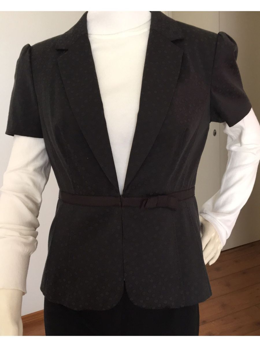 Tahari Arthur S Levine Blazer Jaqueta Feminina Manga Curta Marrom