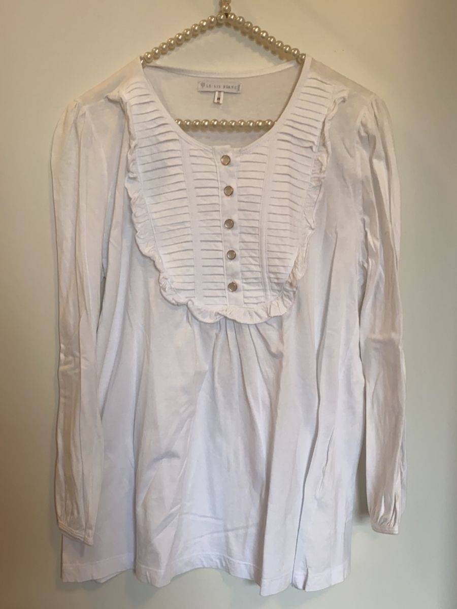 Blusa Algodao Manga Longa Com Gola Blusa Feminina Le Lis Blanc