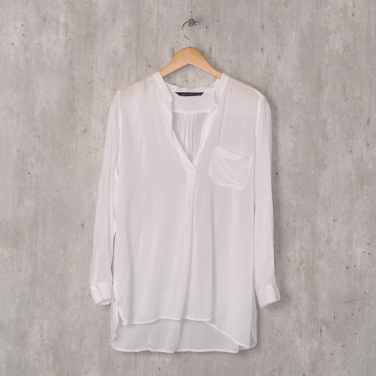 Blusa Feminina Basica Canelada Manga Longa Decote V Branca Cea