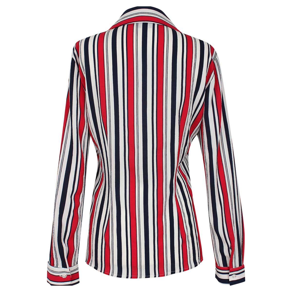 Blusa Para Dama A Rayas Manga Larga Cuello Camisero Office Cool
