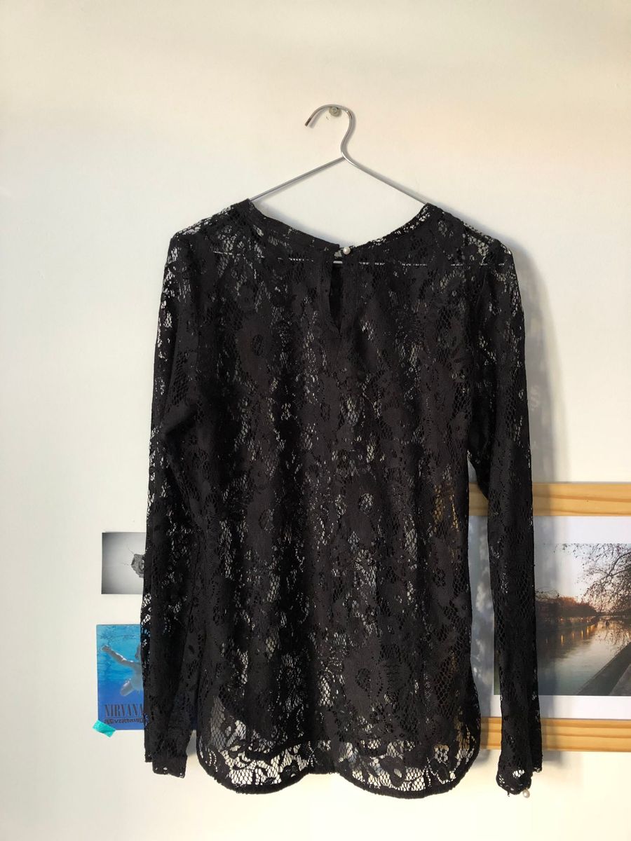 Blusa Manga Longa Em Renda Preto