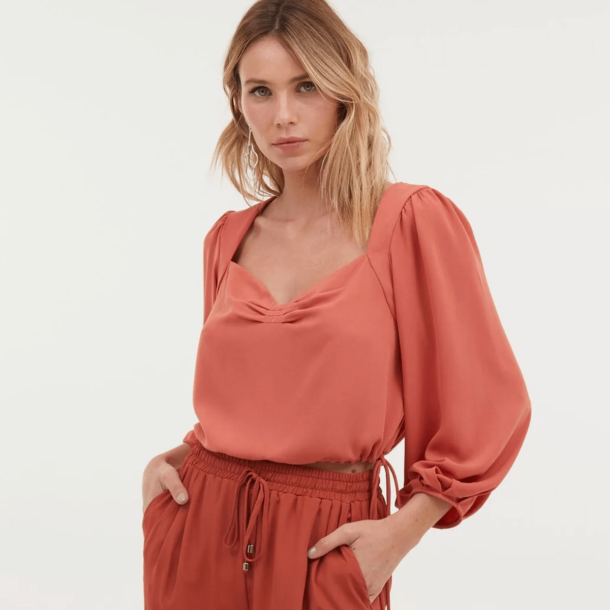 Blusa Em Moletom Com Manga Bufante Roupas Blusa Paraiso Feminino
