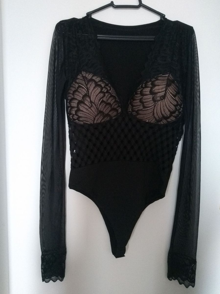Missbagstore Body Blusa Feminina Manga Longa Transparente Tule