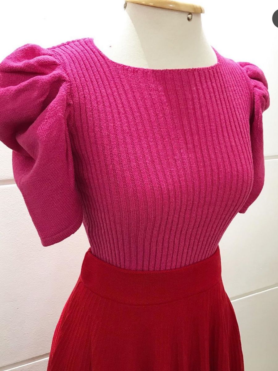 Blusa Rayza Tricot C Manga Bufante Rosa Store
