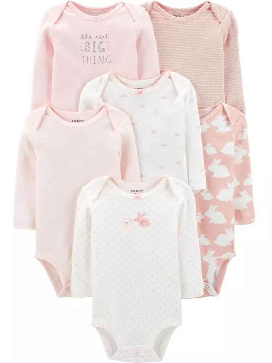 Compre online kit com 4 bodys manga longa carters 24 meses por r9500. As pecas poderao ser lavadas na maquina sem perder a cor original. Tamanho 3 1 3 m. Body carters manga longa coelho rosa body manga longa coelho rosa vem com 6 pecas com estampas variadas.
