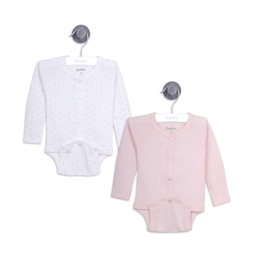 Pack 2 Body Manga Larga Boton Al Frente Algodon Bebe Nina Rosado