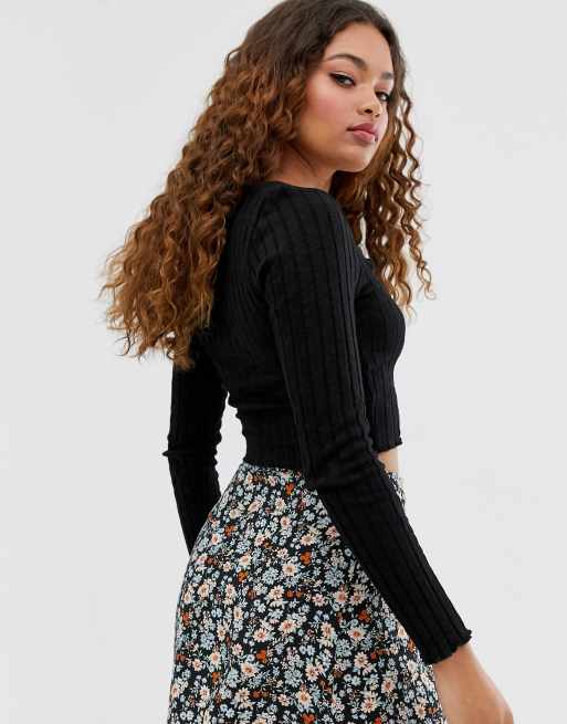 Camiseta Ajustada De Manga Larga Negra Con Botones De Good For