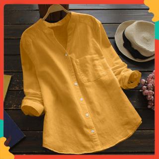 Camisa Feminina Com Linho Manga Longa Decote V Azul Cea