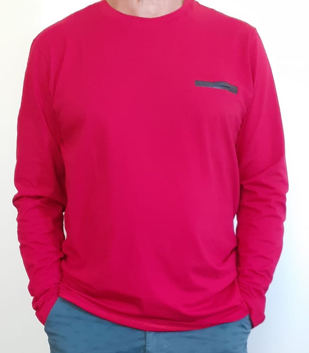 Camiseta Masculina Manga Longa Com Bolso Listrada Marca Blue