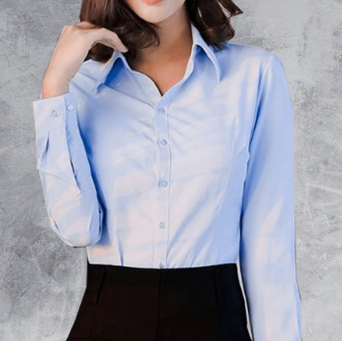 Camisa Feminina Manga Longa Luxo Azul E Branca Botoes Duplos
