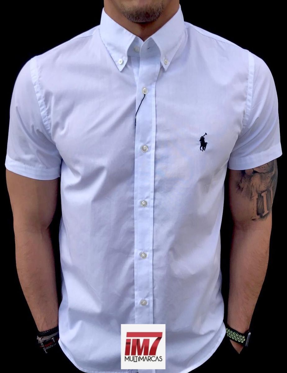 Camisa Social Branca Masculina Casual Manga Curta Estampa Lisa