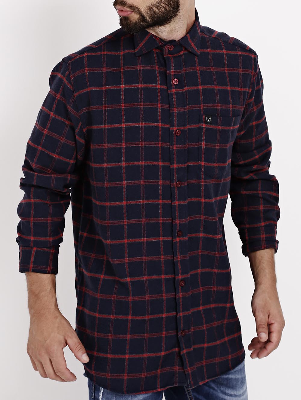 Camisa Xadrez Em Flanela Manga Longa Vilejack Masculina Azul