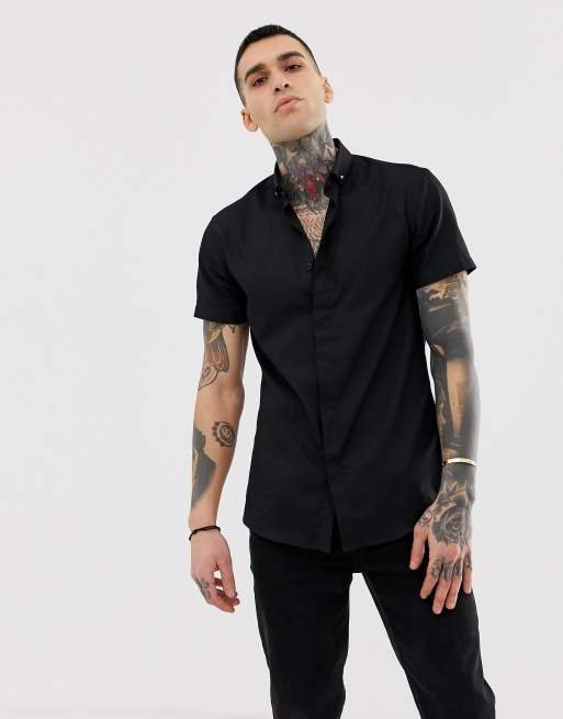Camisa Negra Manga Corta De Lino 69 Hockerty
