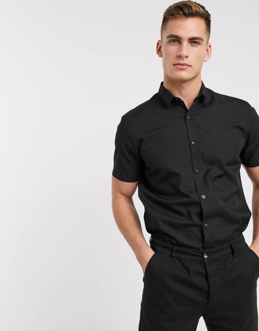 Camisa Manga Corta Malla Negra Slim Zona Hm