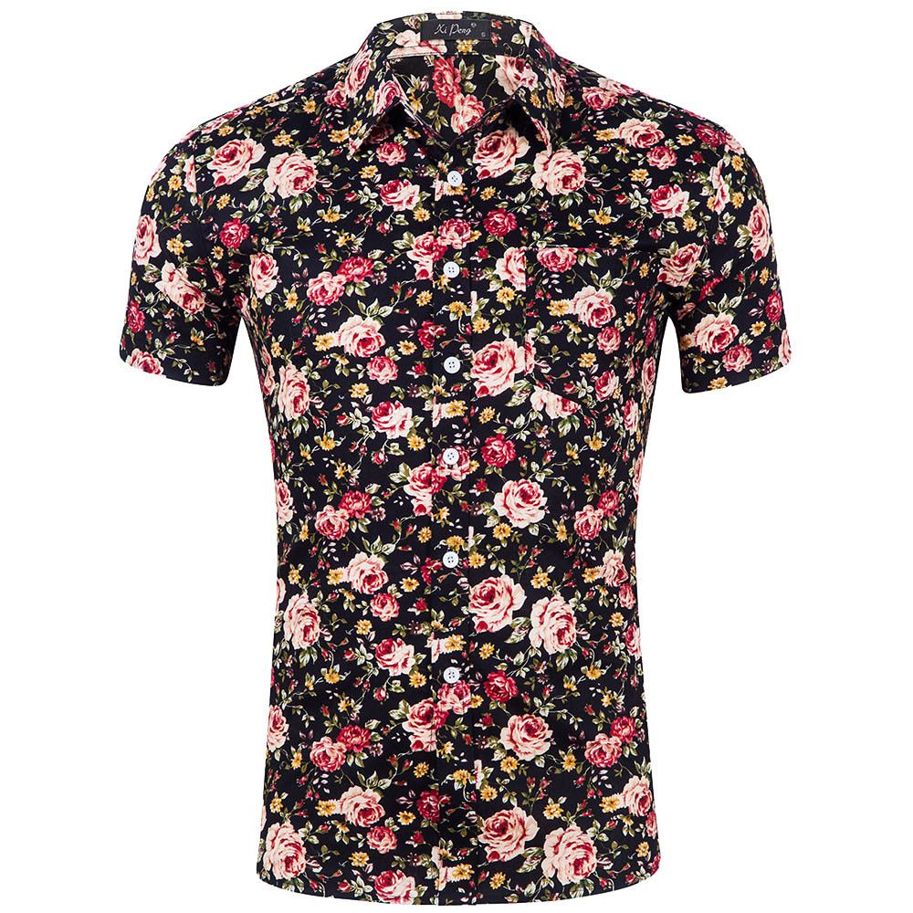 Camisa Manga Corta Hombre Estampado Palmera 100 Natural Fieito