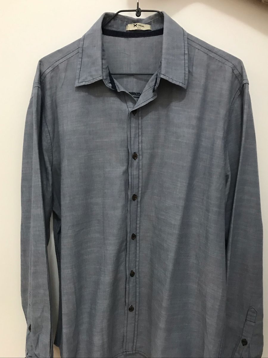 Camiseta Masculina Basica Slim Com Manga Longa Cinza Na Hering