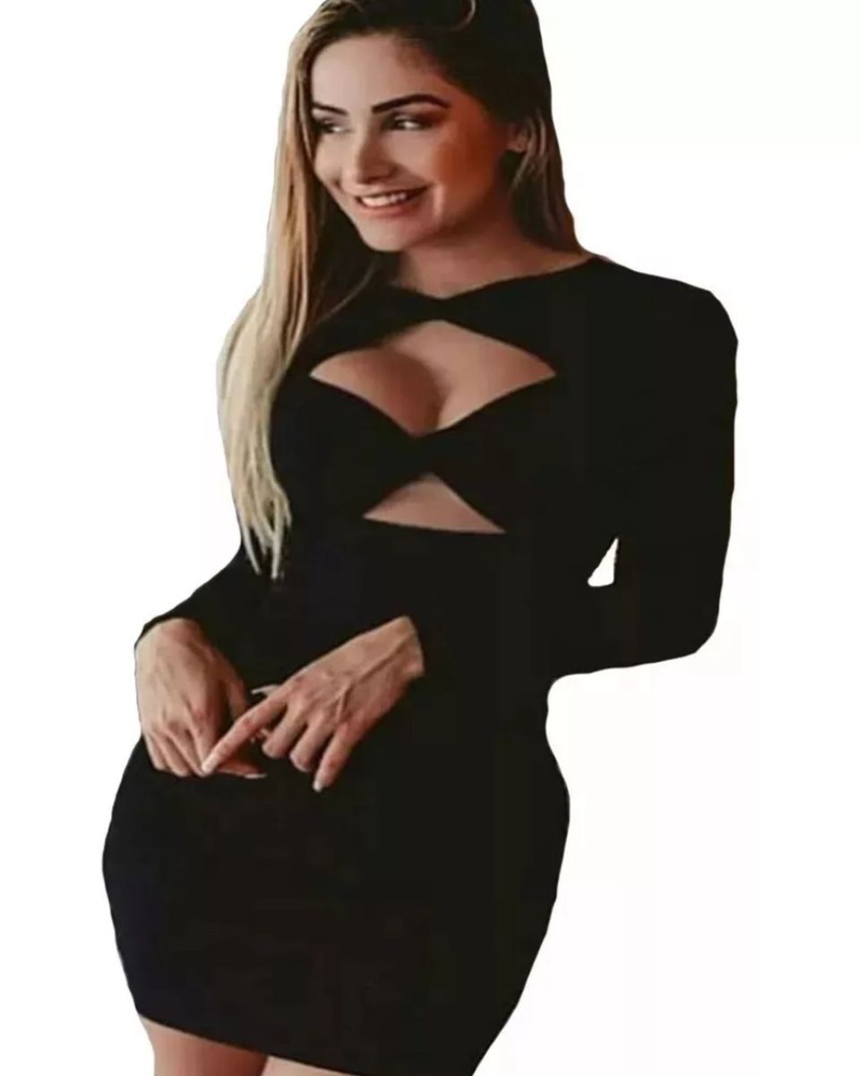 Vestido Colado Preto Manga Longa Dlc21501 Vestidos De A A Z
