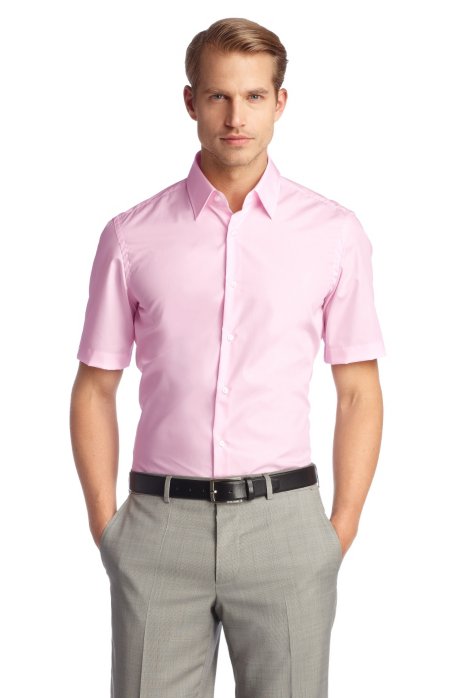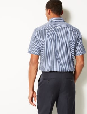 Double Two Manga Corta Planchado Facil Oxford De Algodon Camisa
