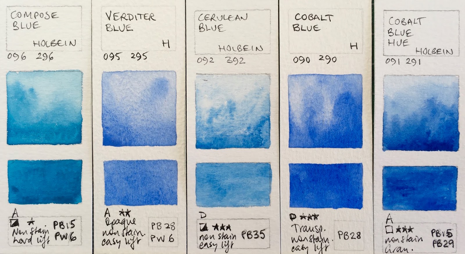Jane Blundell Artist Watercolour Comparisons 8 Blues