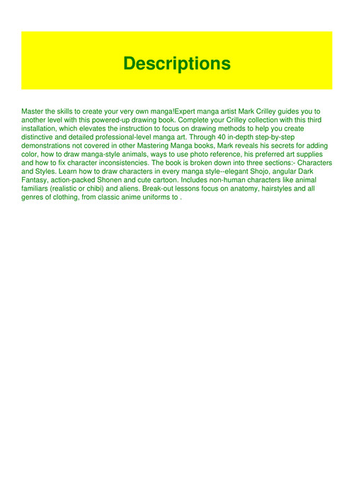 Pdf Download Mastering Manga With Mark Crilley 30 Drawing