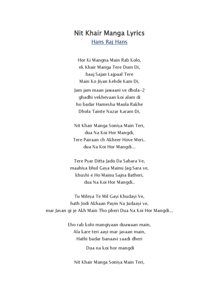 Nit Khair Manga Hans Raj Hans Lyrics Song Meanings Videos