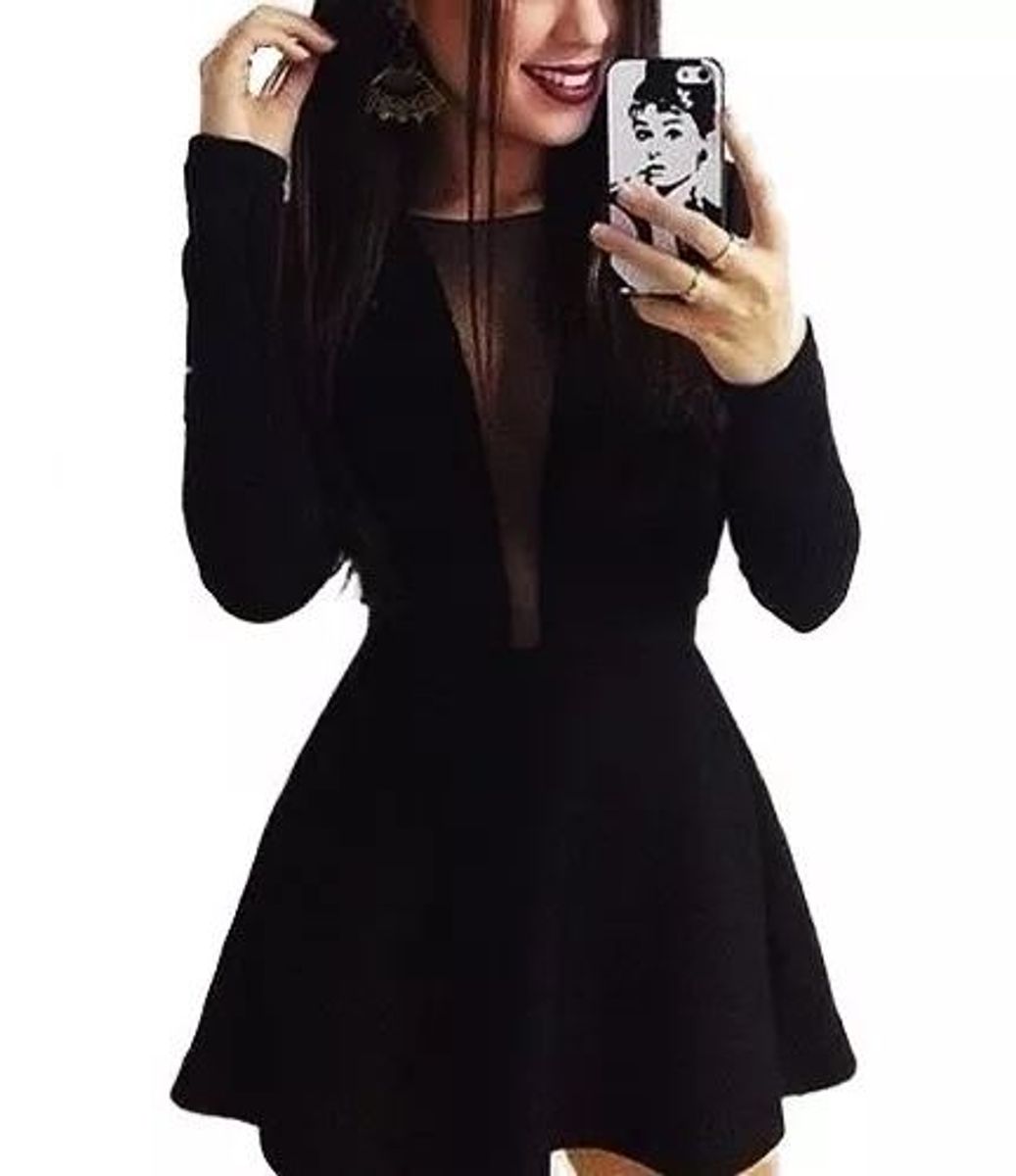 Vestido Curto Manga Longa Festa Rendado Shoopweb Vestido