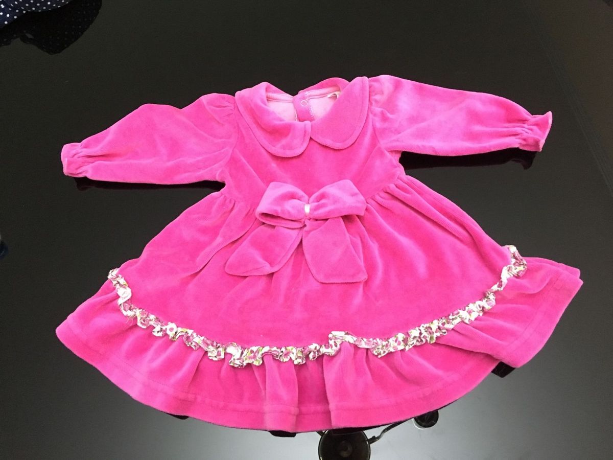 Vestido De Plush Manga Longa Tam 1 A 2 Brecho Infantil Joao E