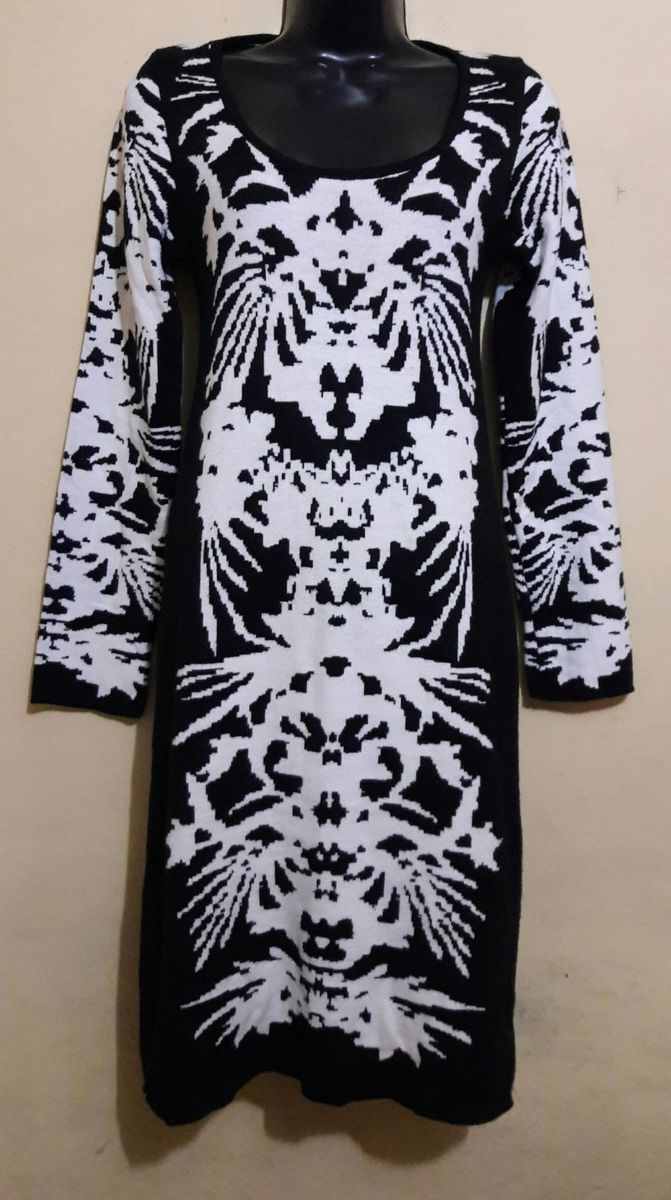 Vestido Tricot Preto E Branco Tubinho Manga Longa Inverno R 59