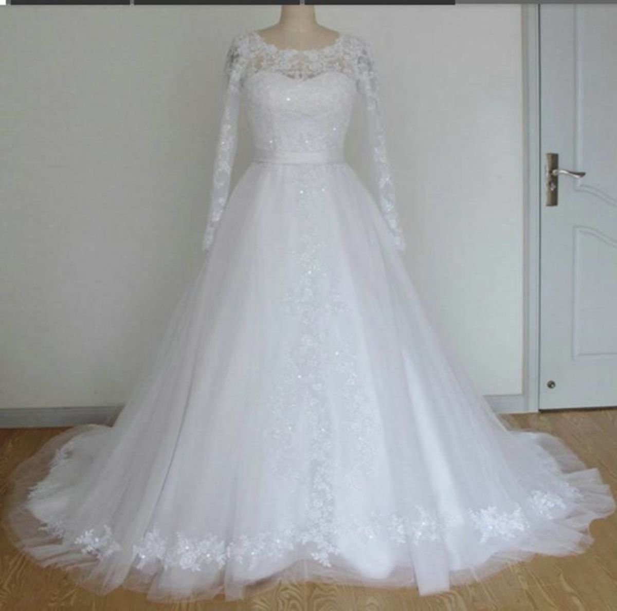 Vestido De Noiva Renda Manga Longa Novo Sob Medida Saia Tule